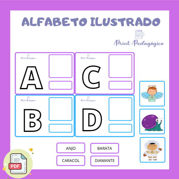 OBJETIVO: CONHECER AS LETRAS DO ALFABETO RELACIONANDO A FIGURA/ ESCRITA COM A LETRA INICIAL. DESENVOLVER A CONSCIÊNCIA FONOLÓGICA. AUXILIAR NA ALFABETIZAÇÃO.