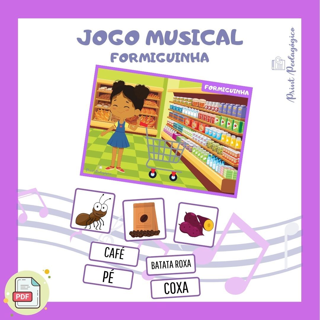 PROPOSTA: A sugestão inicial é apresentar a música para a criança e deixar que explore livremente as fichas, compondo desta forma os cenários. A criança pode realizar a leituras das palavras, além de associar palavras e figuras.